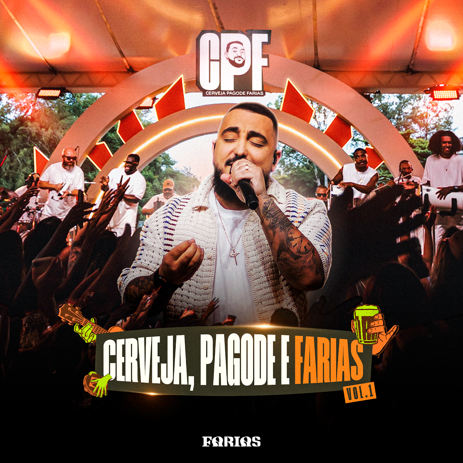 "CPF (Cerveja, Pagode e Farias)" conta ainda com participações especiais de nomes importantes do pagode atual, como Ferrugem, Fabinho, TH Soares e Davi Quaresma, reforçando a conexão do artista com a nova geração do gênero. Com produção musical de Miguel Torres, o projeto nasce também com potencial de se tornar uma label, com a proposta de levar o nome de Farias e a experiência do CPF para diferentes palcos pelo país.
